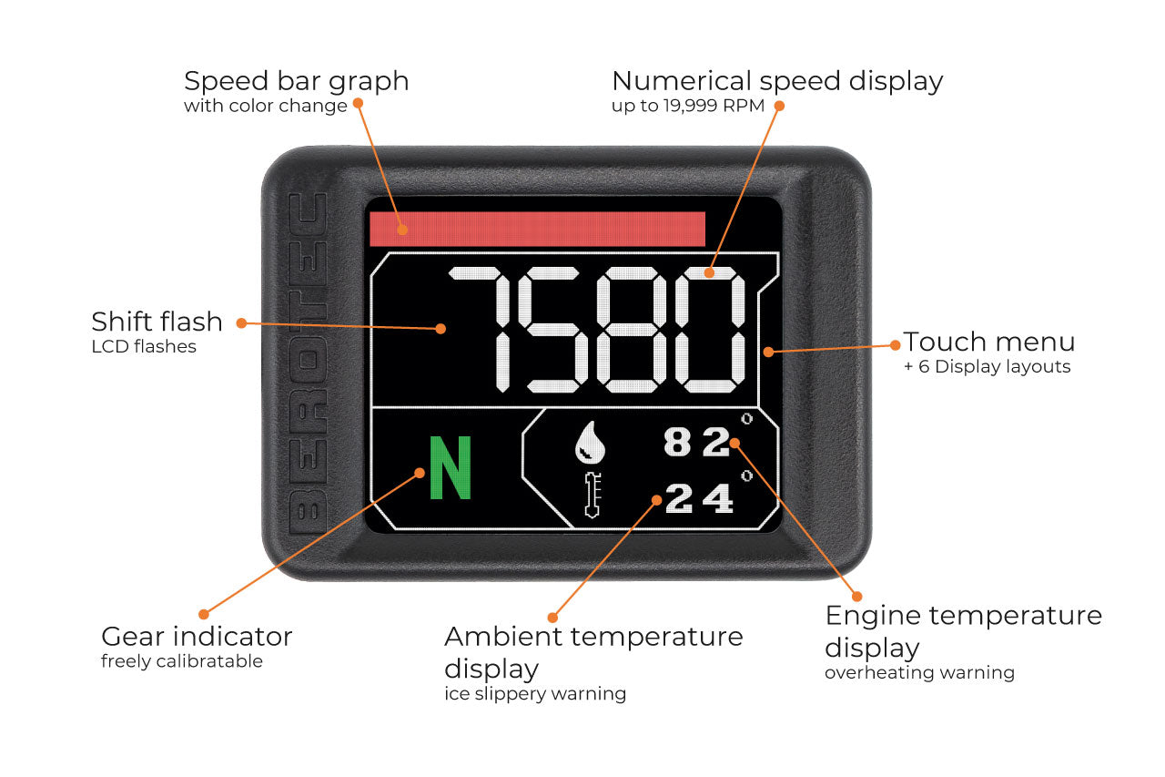Mit Hilfe dieser Informationen kann der Fahrer das vollständige Leistungspotential seines Motors nutzen und zugleich schädigende Belastungen vermeiden. Der CUMPAN überwacht den richtigen Schaltzeitpunkt über Motordrehzahl / Motortemperatur und warnt bei Bedarf mit dem integrierten Schaltblitz. Zusätzlich wird der aktuell gewählte Gang, sowie die Umgebungstemperatur angezeigt.